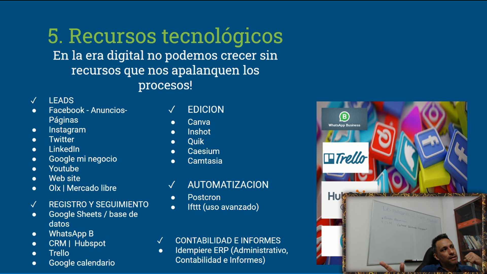 2. Segundo entrenamiento: Recursos tecnológicos para mostrarse en redes sociales y conseguir mas clientes.